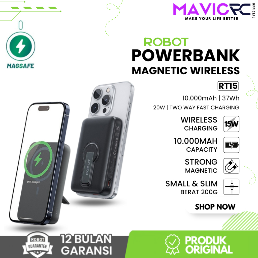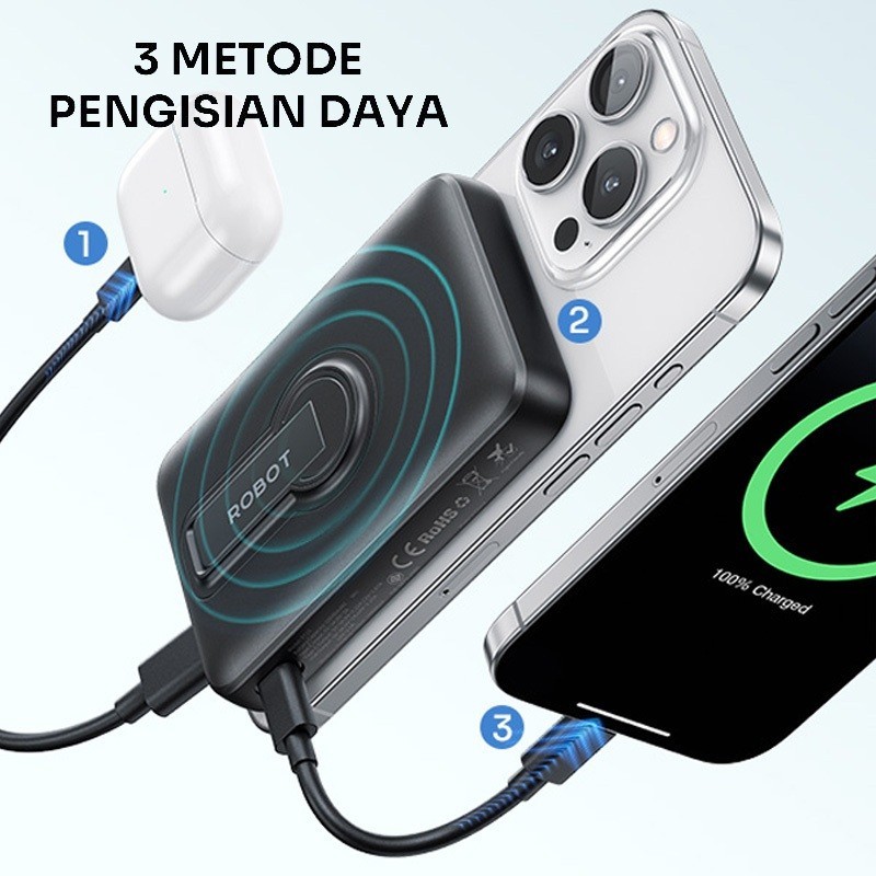 Robot Rt15 Powerbank Magnetic Magsafe Kuat 10N Pd 20W Fast Charging 10.000 Mah Original - Garansi Resmi 1 Tahun