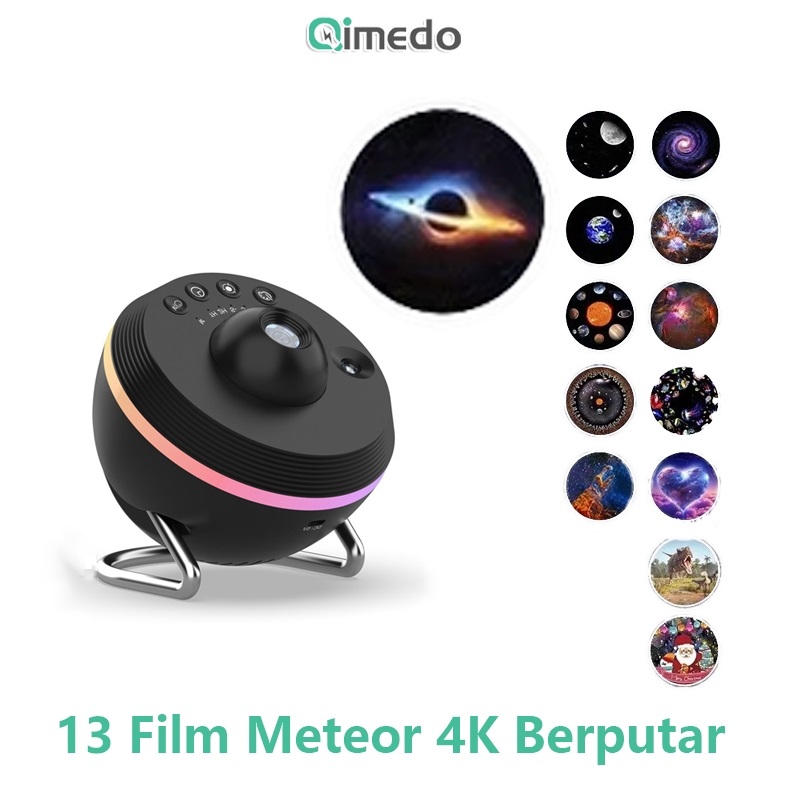 Lampu Tidur Proyektor QIMEDO 13PCS Film Galaxy Efek Meteor 4K Resolusi Berputar