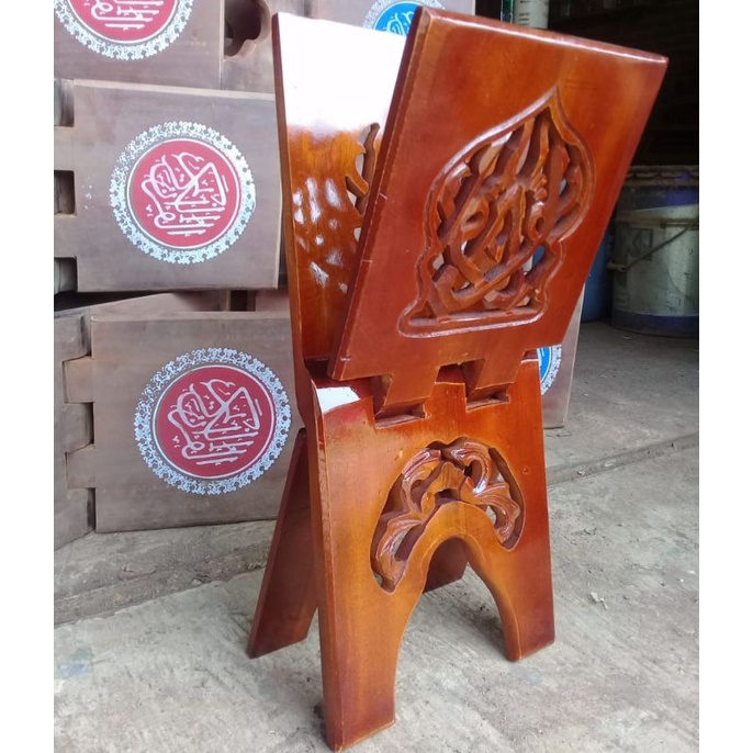 Rekal Al-Quran Tempat Baca Al Qur'an Meja Lipat Asli Jepara Motif Iqro' & Bunga