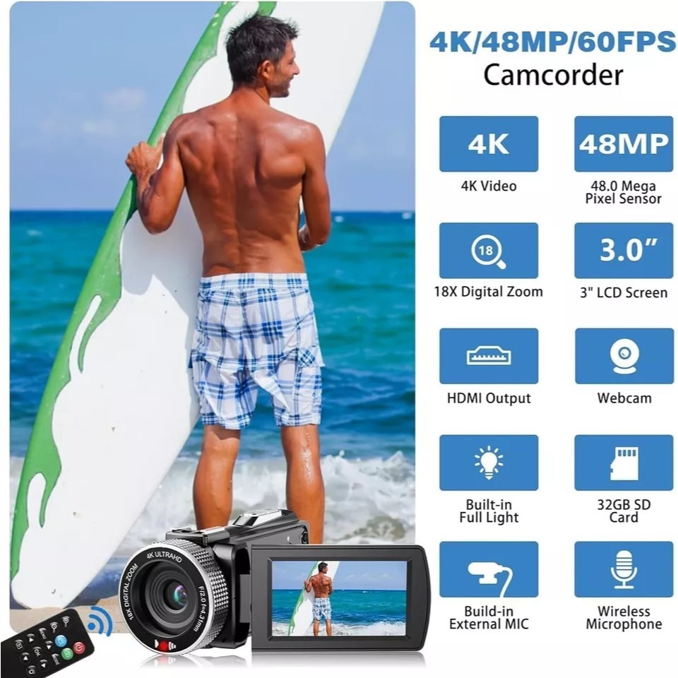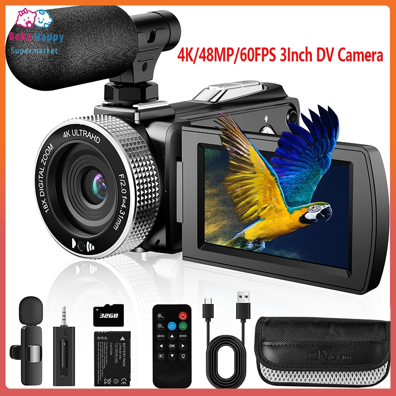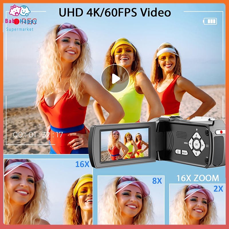 64GB 16X Zoom Handycam 4K HD Video Camcorder 1050mAh Digital Video Cameras For Photography Youtube Live Streaming 3 Inch