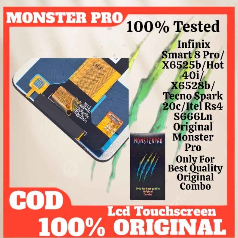 LCD TOUCHSCREEN INFINIX SMRT 8 PRO/X6525B/HT 40i/X6528B/TECNO SPARK 20C/SMRT 8 PLUS/ITEL RS4/S666LN ORIGINAL