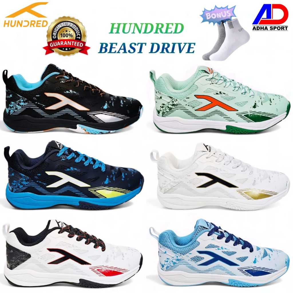 Bonus Kaos Kaki Sepatu Badminton Hundred Beast Drive Sepatu Bulutangkis Original