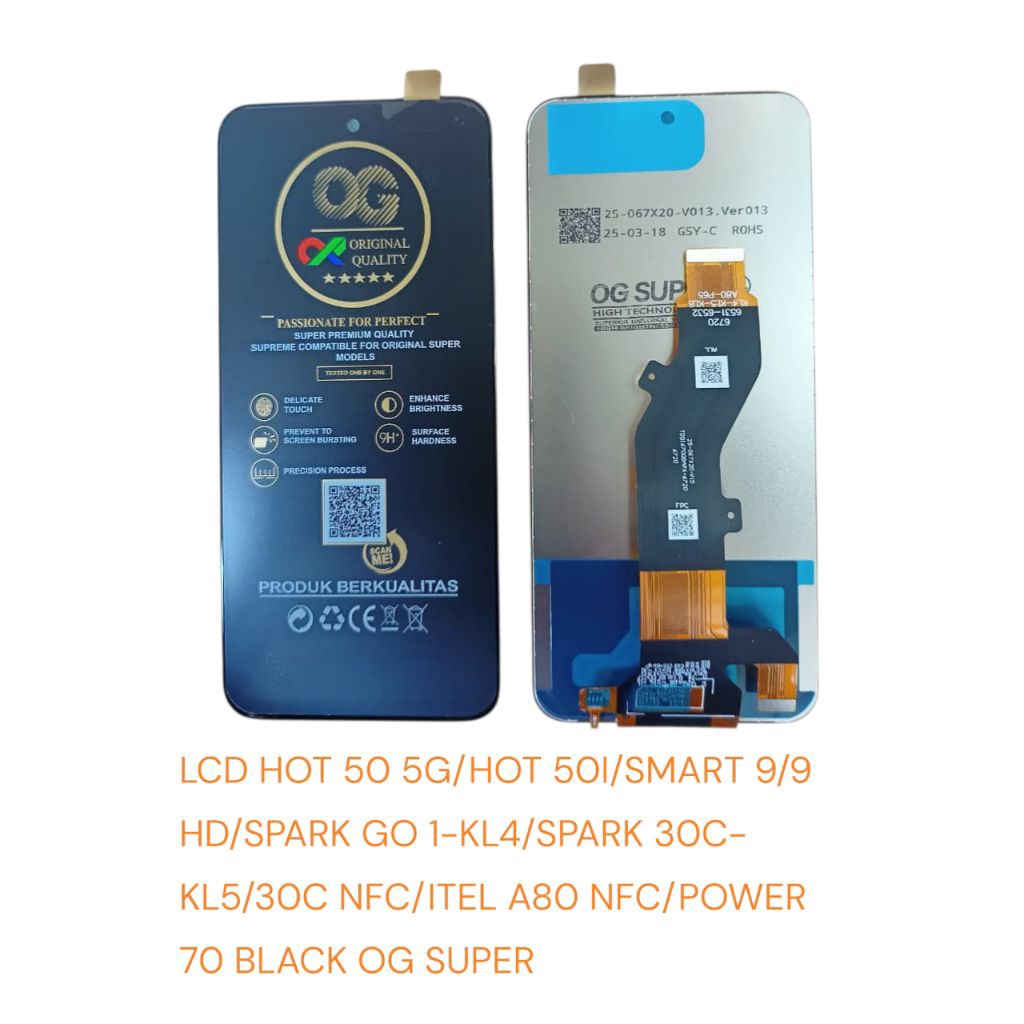 LCD TOUCHSCREEN HT 50 5G/HT 50I/SMRT 9/9 HD/SPARK GO 1-KL4/SPARK 30C-KL5/30C NFC/ITEL A80 NFC/POWER 70 BLACK OG SUPER