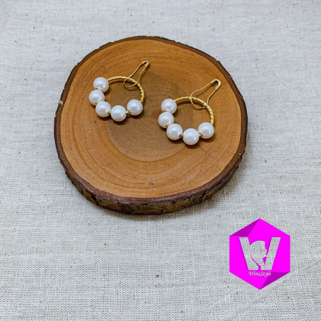 Winsstyle Anting Gantung Jilbab Model Gipsy Bulat Mutiara Mewah Pesta WINS003
