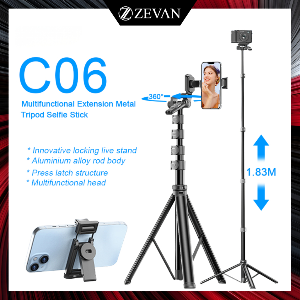 ZEVAN 1.83 Handle Detachable Design Balanced and stable shooting multifunctional expansion of the metal tripod selfie stick C06