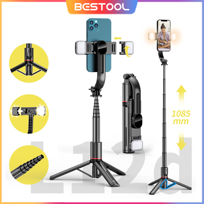 BESTOOL Tongsis Selfiestick Bluetooth with Double Fill Light Tripod Aluminum Alloy With Remote Control L12D