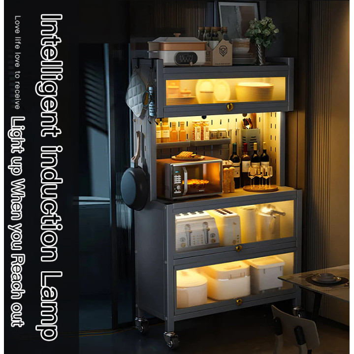 Rak Lemari Dapur Lemari Dapur Minimalis Rak Dapur Serbaguna Rak Penyimpanan Dapur Rak Piring Oven Microwave Lantai Berdi