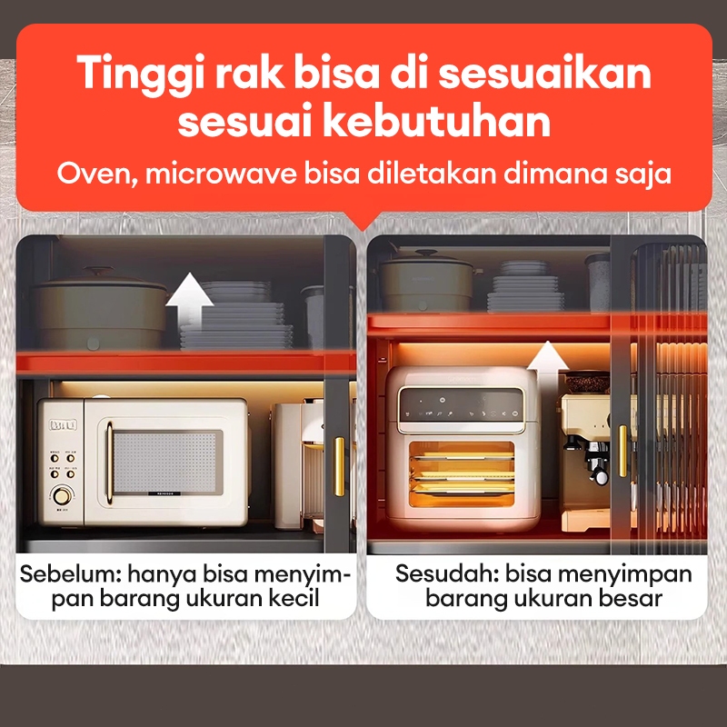 Lemari Dapur Rak Dapur Serbaguna Lemari Piring Estetik Rak Piring Susun Rak piring Tertutup Rak Oven Microwave