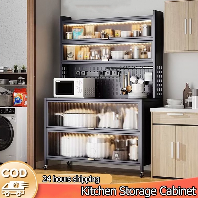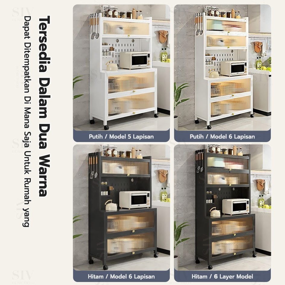 Lemari Dapur Minimalis Rak Dapur Serbaguna Rak Penyimpanan Dapur Rak Piring Oven Microwave Lantai Berdiri Rak