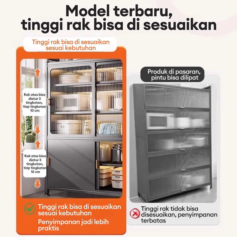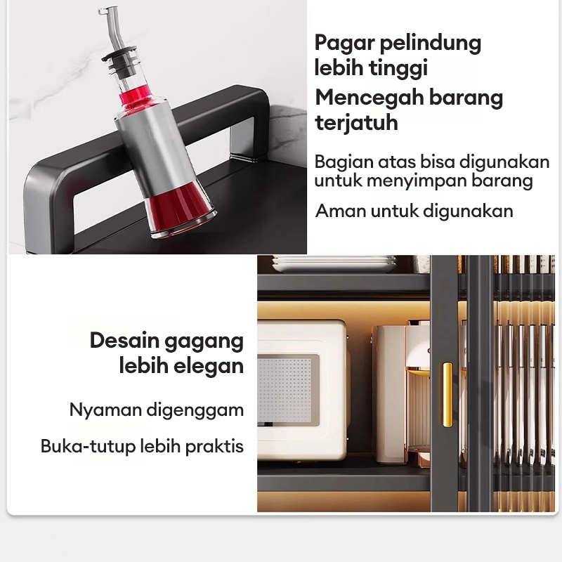 Lemari Dapur Rak Dapur Serbaguna Lemari Piring Estetik Rak Piring Susun Rak piring Tertutup Rak Oven Microwave