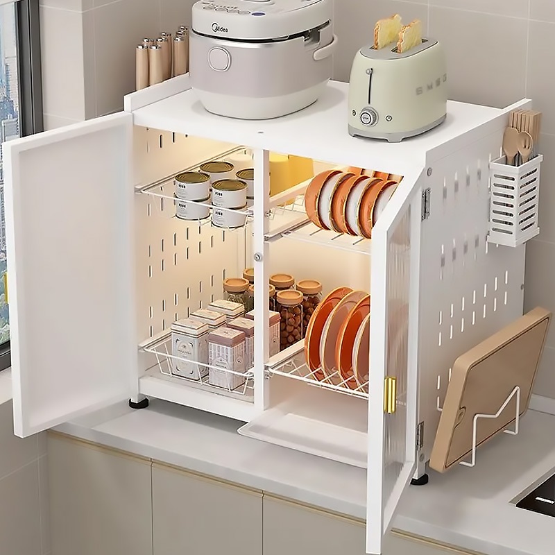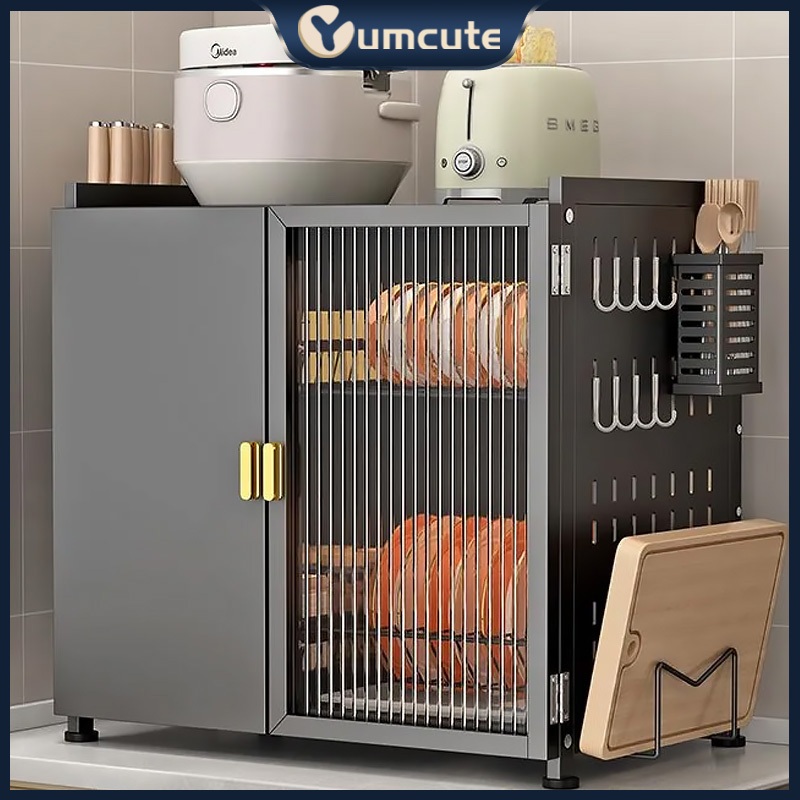 Lemari Rak Dapur Pintu Kabinet Drainase Debu Rak Penyimpanan Piring