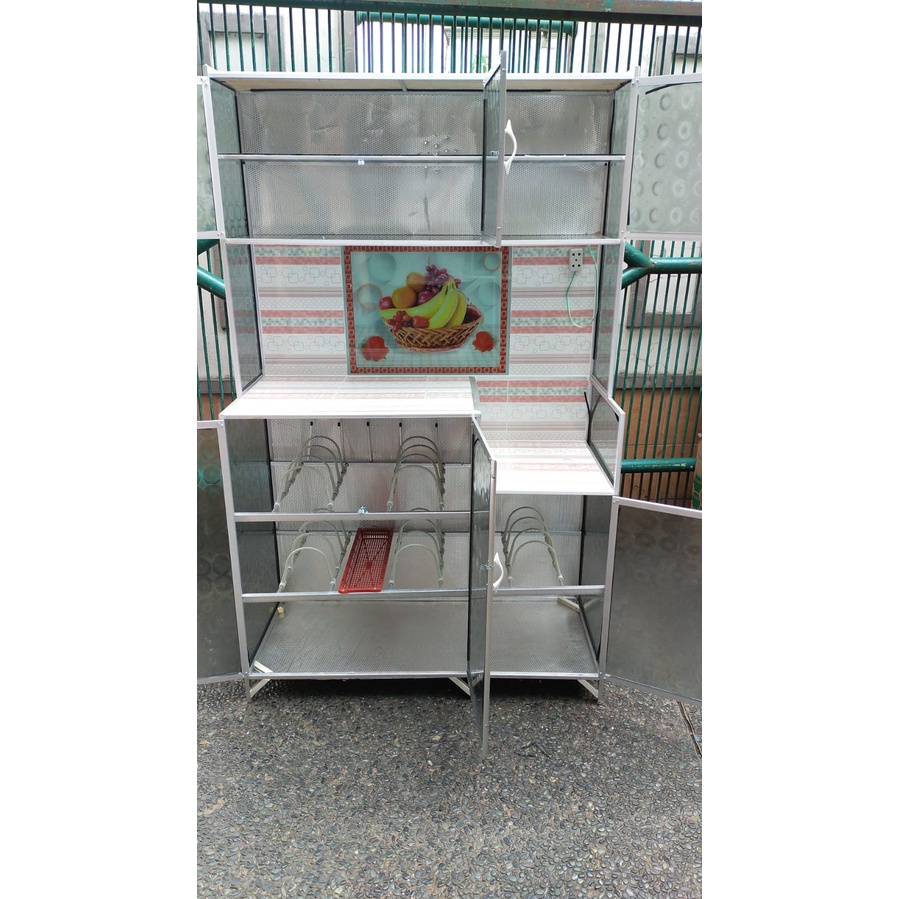 Rak piring / Lemari Piring Kaca Keramik 3 Pintu Magic Buah Seng Keramik KHUSUS BOGOR KURIR TOKO