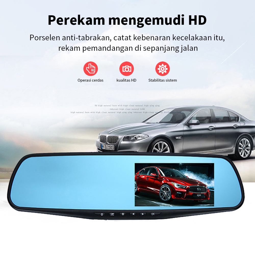 Full HD 1080P 170° Wide Loop Recording Car Camera Spion Dash Cam Car DVR Camera 4.3/4.5 Inch Resolusi Touch Screen Rearview Mirror Night Vision Stream Media Dual Lens