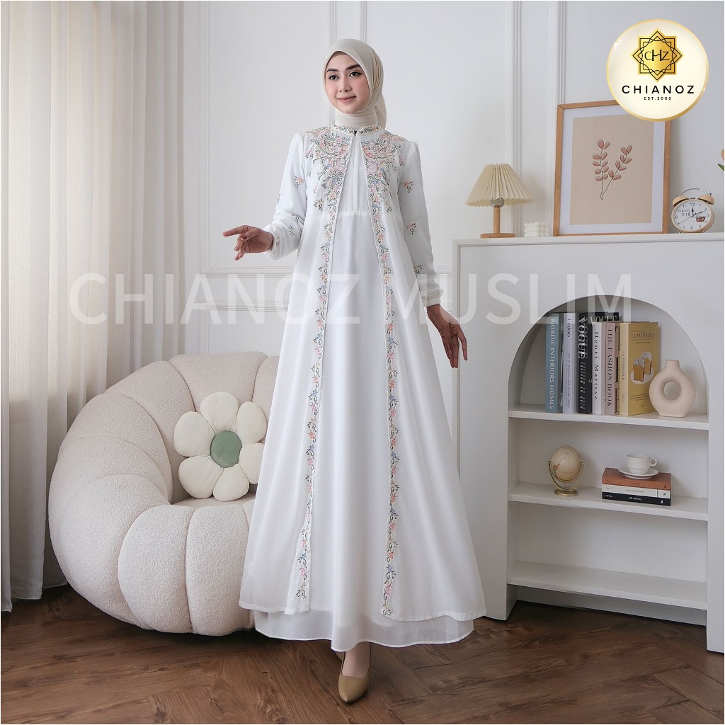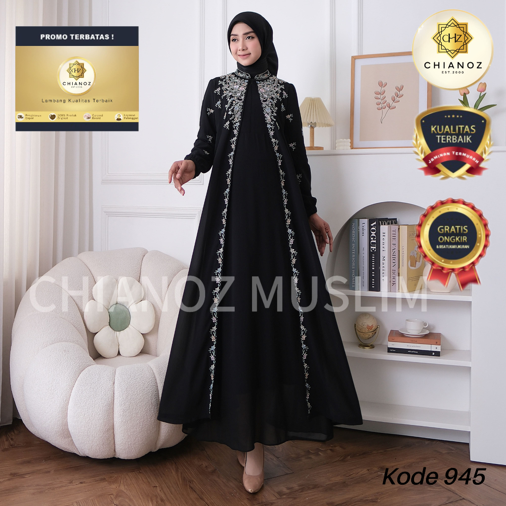 CHIANOZ Gamis Hitam Mewah Rossa Dress Renda Bunga Bordir Baju Lebaran Umroh Haji Manasik Pesta Akad 945 938