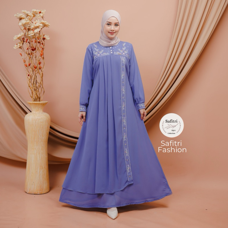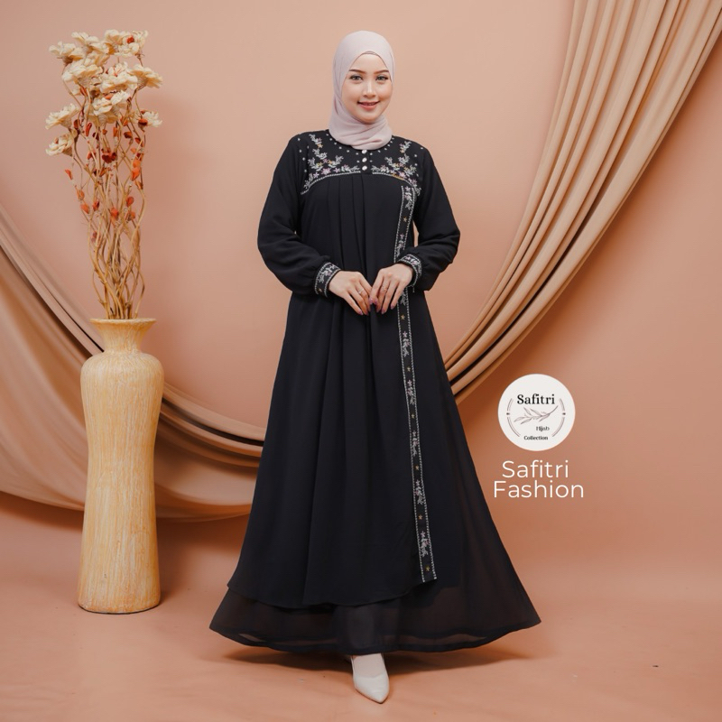JASMINE DRESS Gamis bahan ceruty babydol kombinasi bordir mewah kondangan pesta lebaran manasik haji umroh ihram fashion muslim luxury by Safitri Fashion