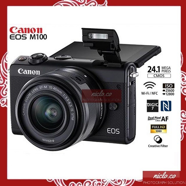 [NEW] KAMERA CANON EOS M100 + LENSA KIT 15-45MM IS STM WiFi - GARANSI 1 TAHUN MIRRORLESS 4000d 600d