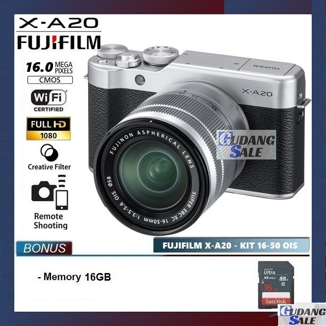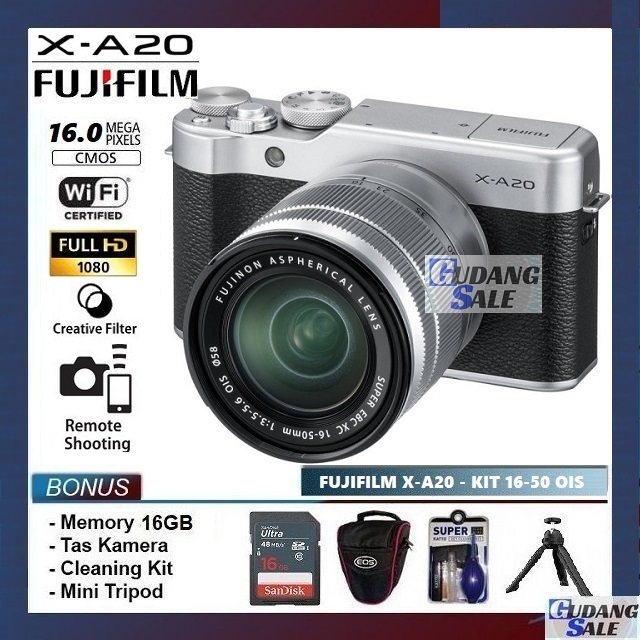 [NEW] Kamera Mirrorless Fujifilm X-A20 / XA20 + Lensa Kit 16-50mm OIS - GARANSI 1 TAHUN CAMERA VLOG XA10 X-A10 m10 Xa3