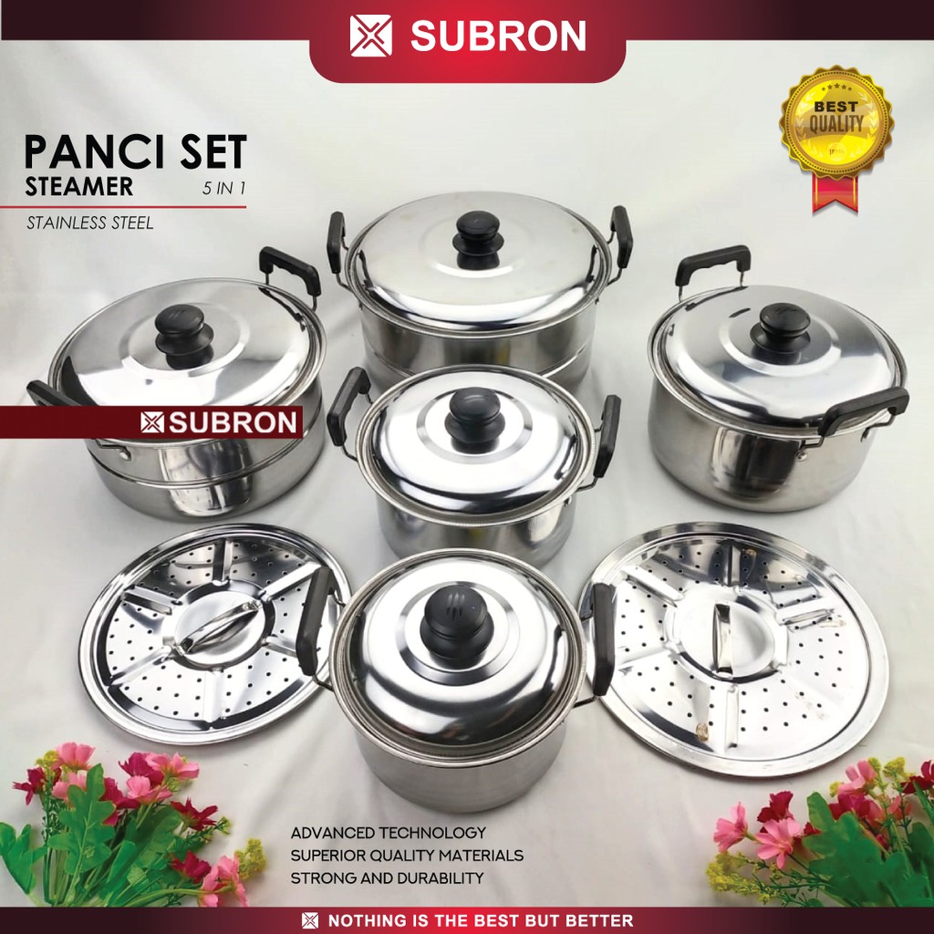 GRATIS ONGKIR Panci Set SUBRON Panci Set 5 IN 1 Panci Sup Kukus Stainless Steamer Soup pot
