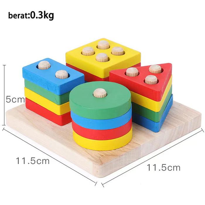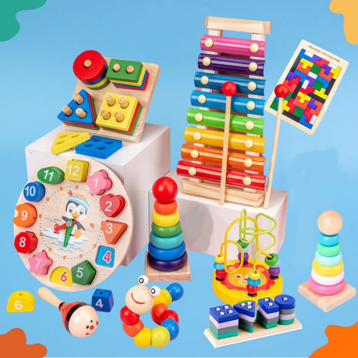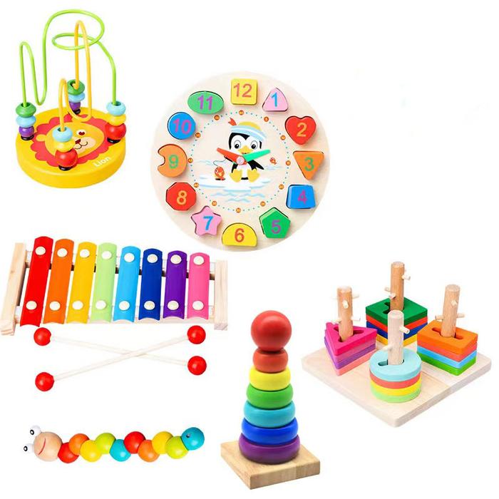 [Star]Sensorik pendidikan Jam bola Mini Puzzle 3d Bentuk Geometris Gambang Mainan anak-anak - Jam Kayu