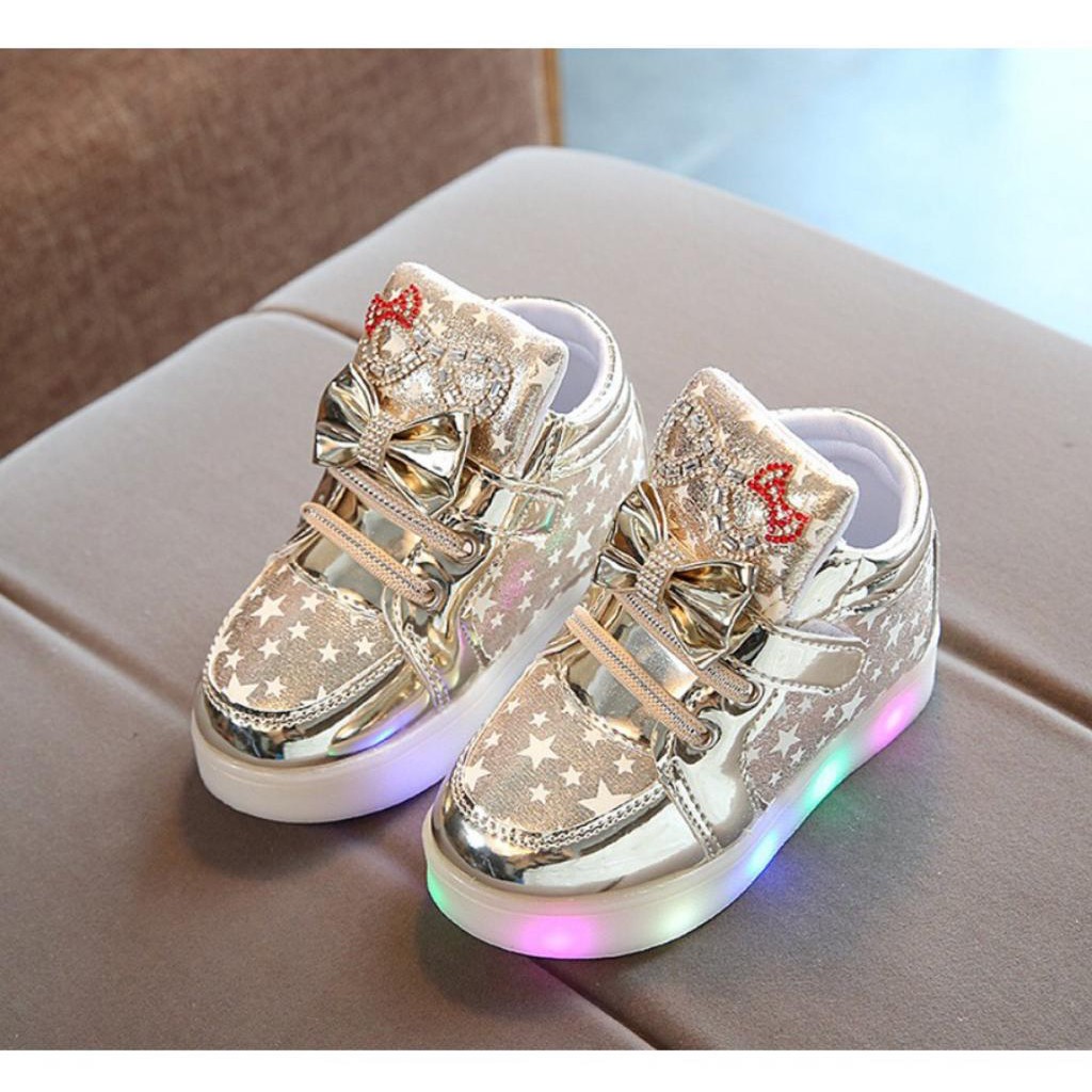 Sepatu Pesta Anak Perempuan Desain Hello Kitty Dengan Lampu Led Menyala Breathable Bisa Jnt