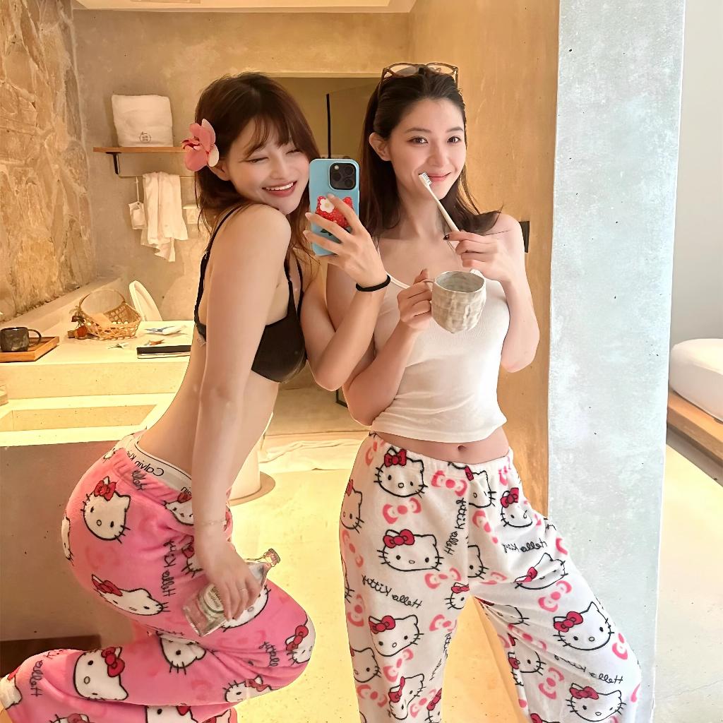 Homie - Celana Panjang Wanita BULU Lembut Polyester Hellokitty Spiderman Celana Tidur Piyama Wanita Celana Couple