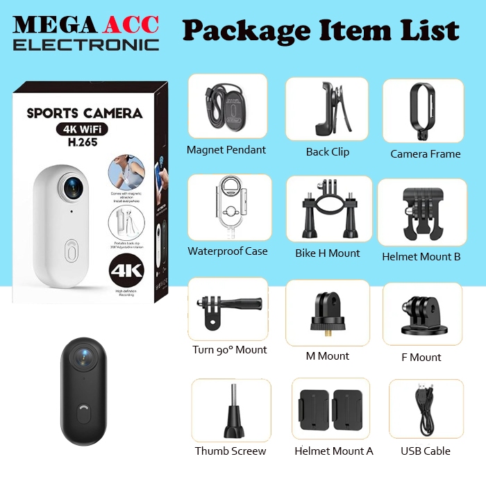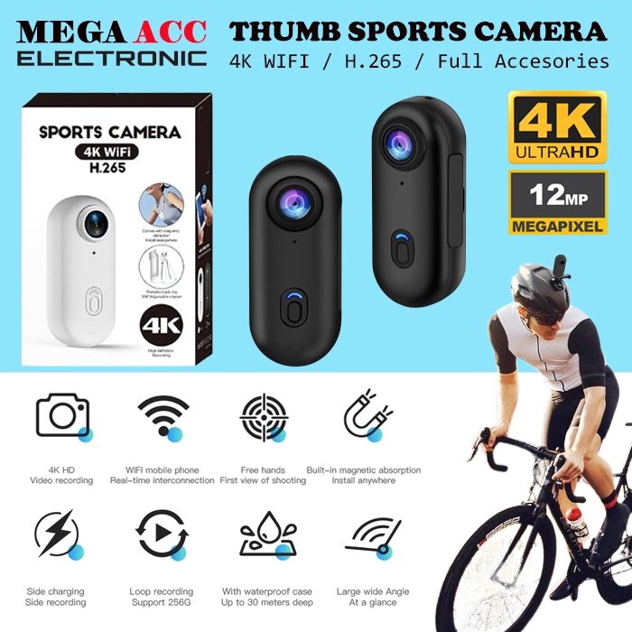 Sports Camera Wifi 4K 12MP – Camera Action Portable Magnetic With Audio – Full Accessories - Waterprrof 30M