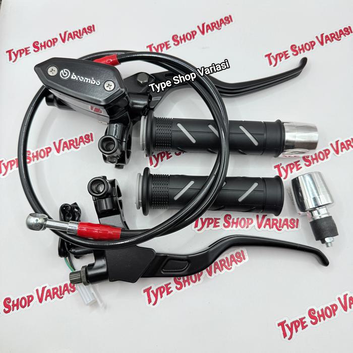 Paket 4in1 Master Rem Tabung Tipe Oval Dan Kotak + Handgrip Sisik + Jalu Stang CHROME + Selang Rem