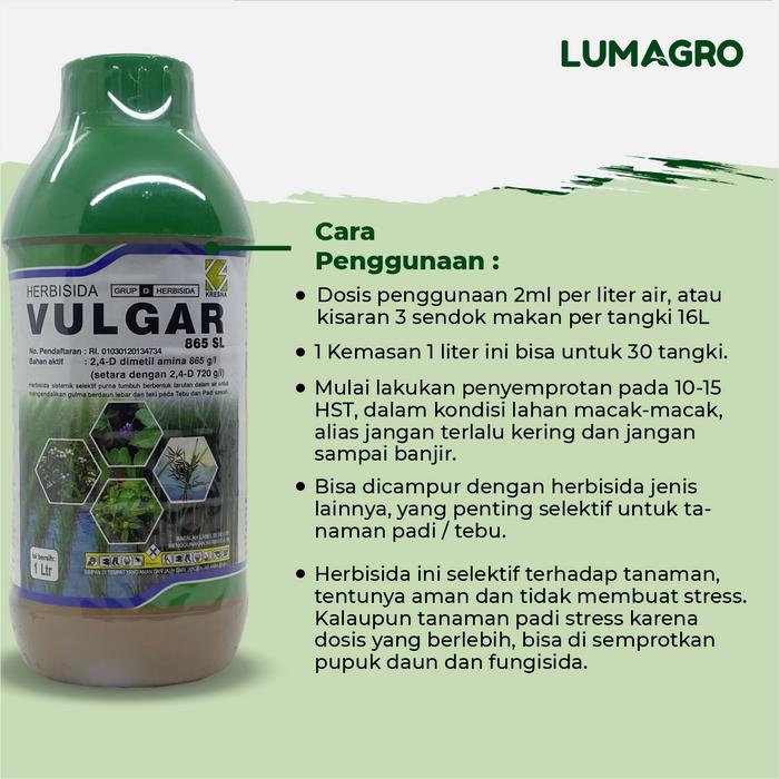 BEST PRODUK ! HERBISIDA VULGAR 865SL 200ML DIMETIL AMINA PENGENDALI RUMPUT LIAR SELEKTIF PADI ORI