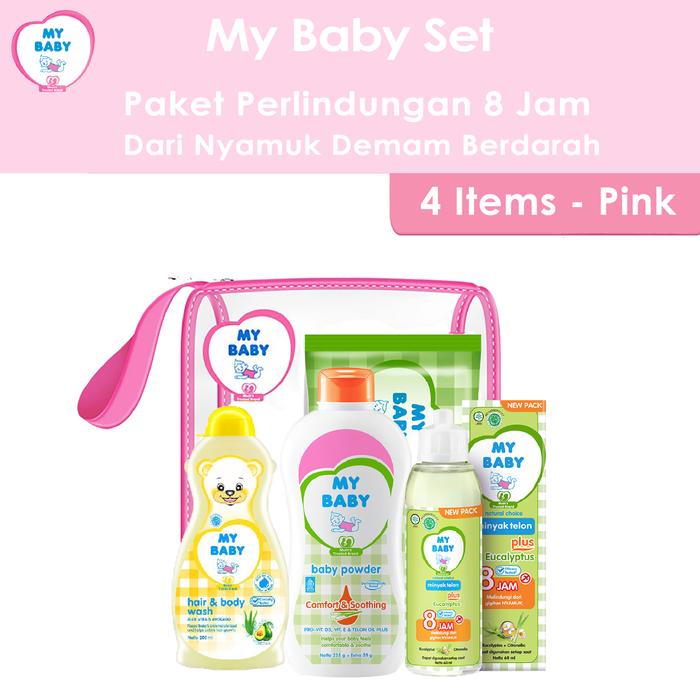 MY BABY Gift Set Pink Paket Perlindungan 8 Jam - 1 Paket 4 Items (Sabun Bedak Minyak Telon Tisu Basah Bayi) - Pink