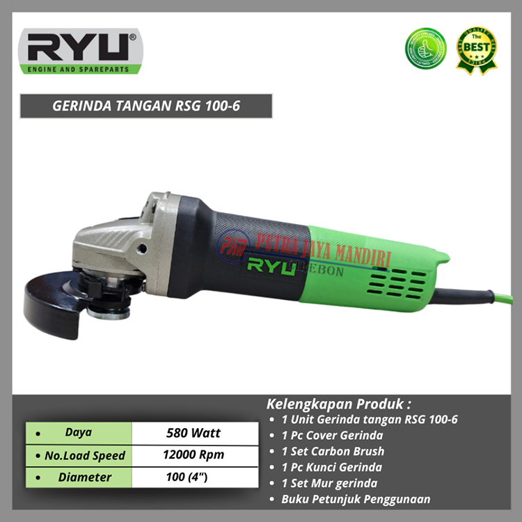 Ryu Gerinda Tangan 4 Inch Free 2 Pc Batu Potong Besi Gurinda Grinda Gergaji Besi Kayu RSG 100-6