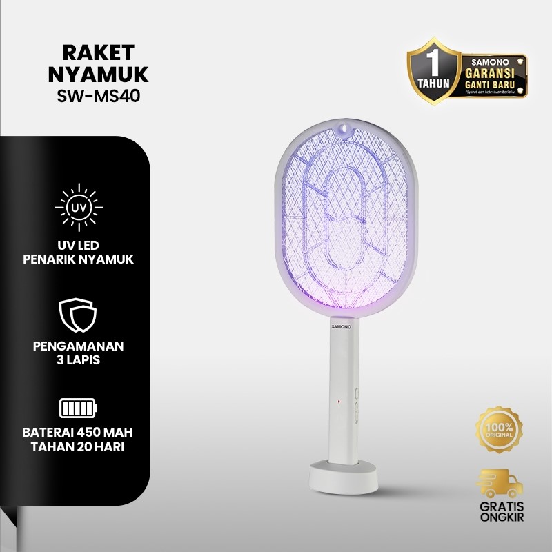 Raket Nyamuk SAMONO Elektrik Pengusir Nyamuk LED dengan Stand Holder 3 Fungsi listrik luby krisbow aoki bolde cas starco