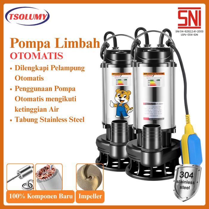 Tsolumy Pompa Celup Air Bersih Kotor SPV-200SV/F - 1500SV/F Otomatis Manual Stainless Steel Pompa