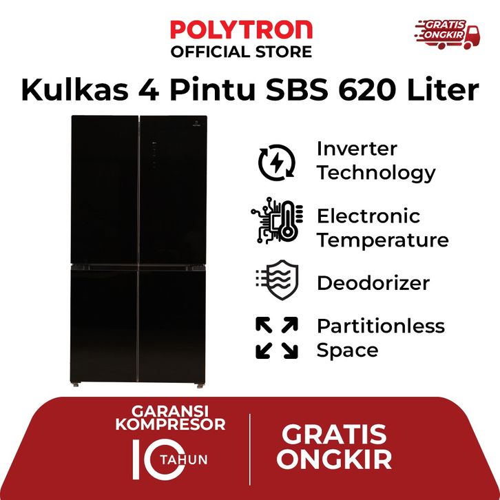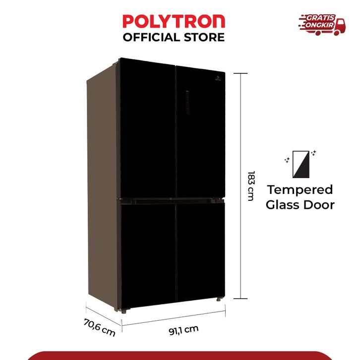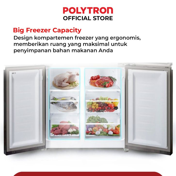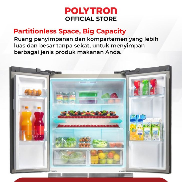 kulkas 4 pintu besar POLYTRON Kulkas New Belleza Inverter 4 Pintu Multidoor Side by Side PRS 561X lemari es 4 pint