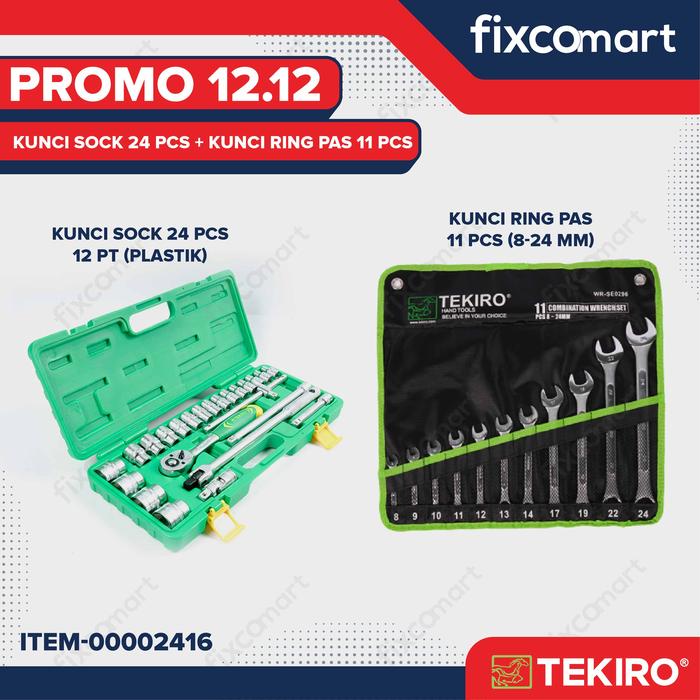 Promo 12.12 - Tekiro Kunci Sock 24 pcs + Tekiro Kunci Ring Pas 11 Pcs - 6 PT Besi + 11