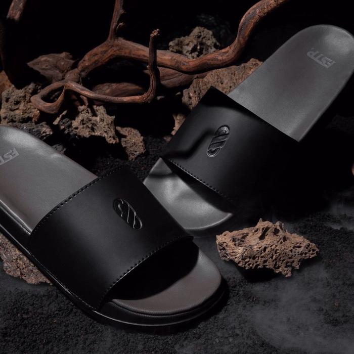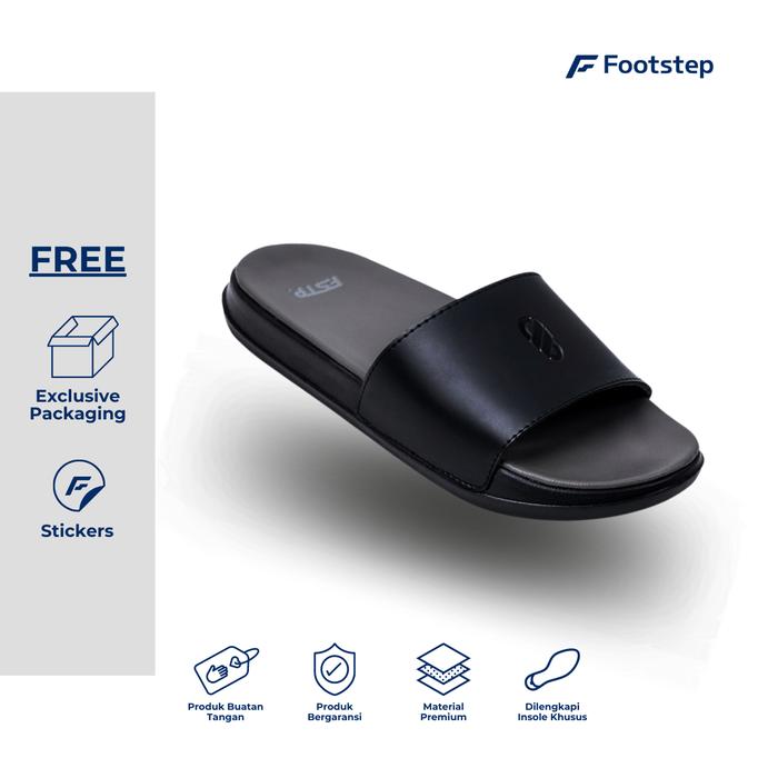 Sendal Cowok Footstep Symbol V2 Full Black Slide Sandal Shoes Pria Selop Karet - Full Black 39