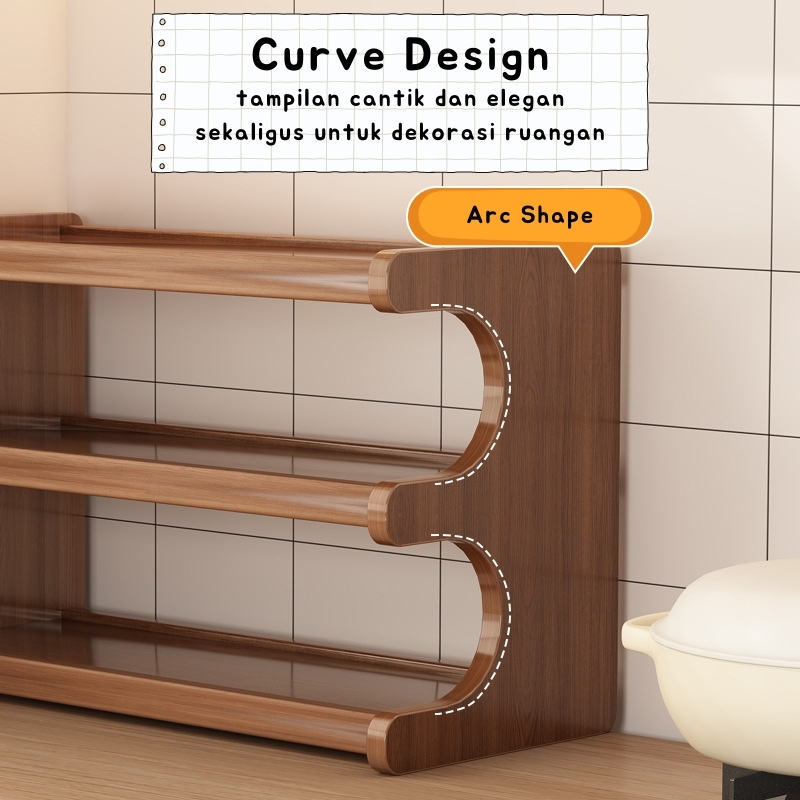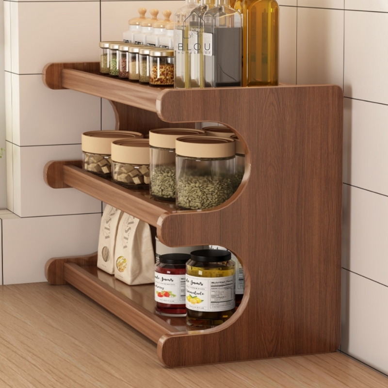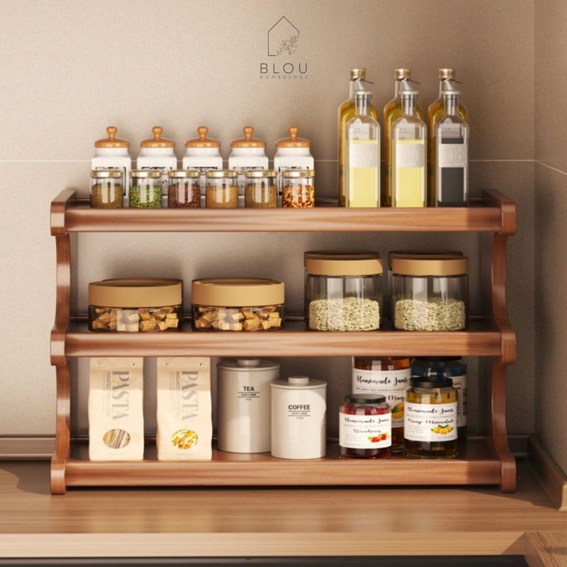 Blou Rak Kayu Aesthetic Estetik Kitchen rack seasoning storage rack rak kayu bambu gelas bumbu dapur multifungsi dapur r