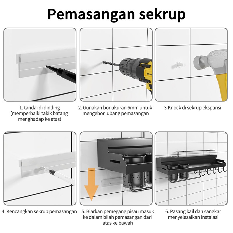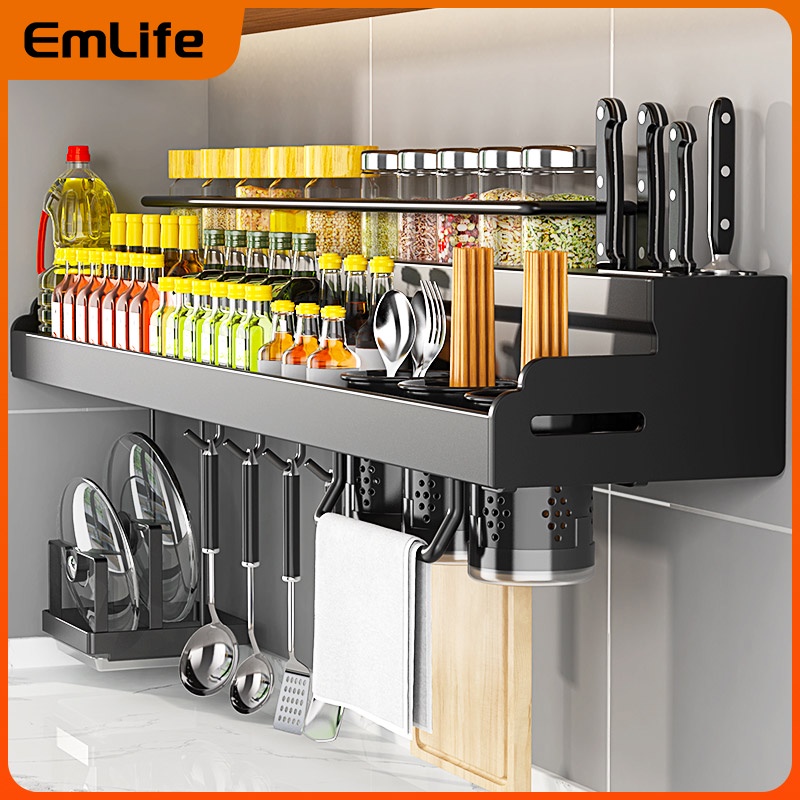 Rak Bumbu yang Dipasang Dinding Rak Penyimpanan Dapur Rak Pisau Hitam Rak Multifungsi