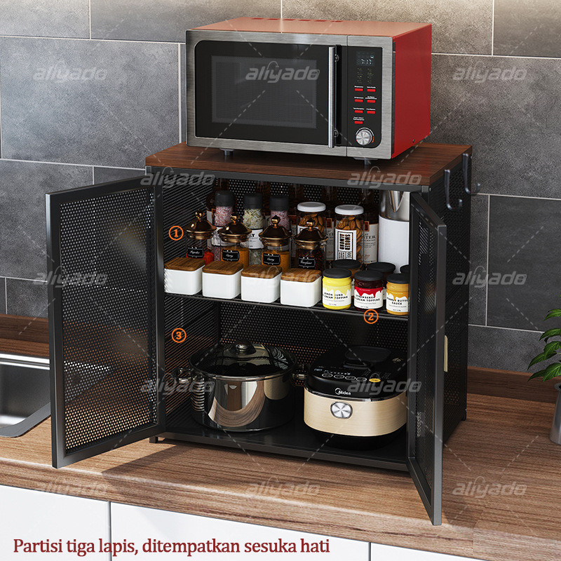 Rak Dapur Lemari Piring Rak Logam Penyimpanan Serbaguna Rak Dapur Kabinet Multi-Lapisan Bumbu Dapur Nama