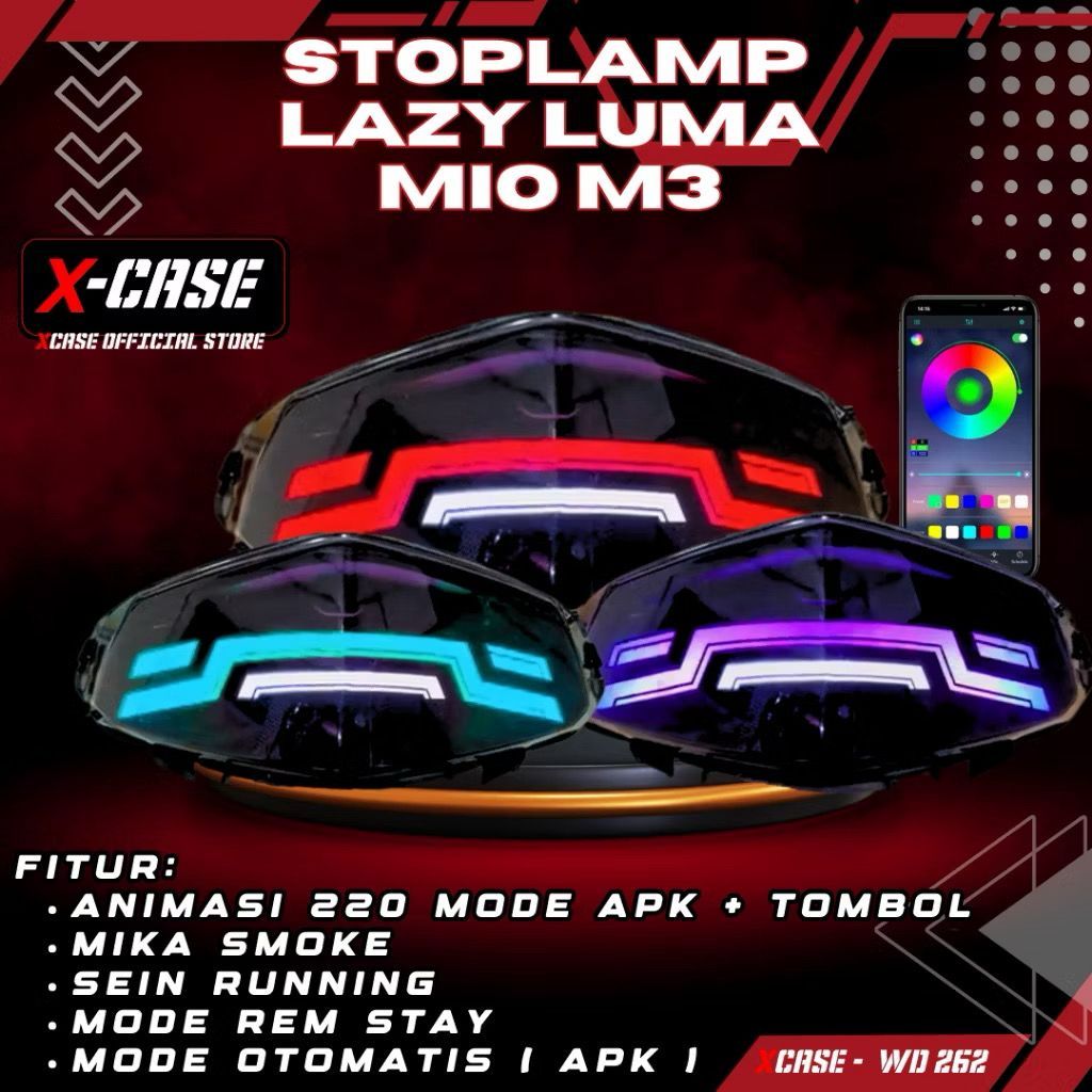 Lampu Stop Rem Belakang StopLamp Lazy Lumatail Mio M3 Mio Z Mio S Mio l125 200 Mode RGB Connect HP