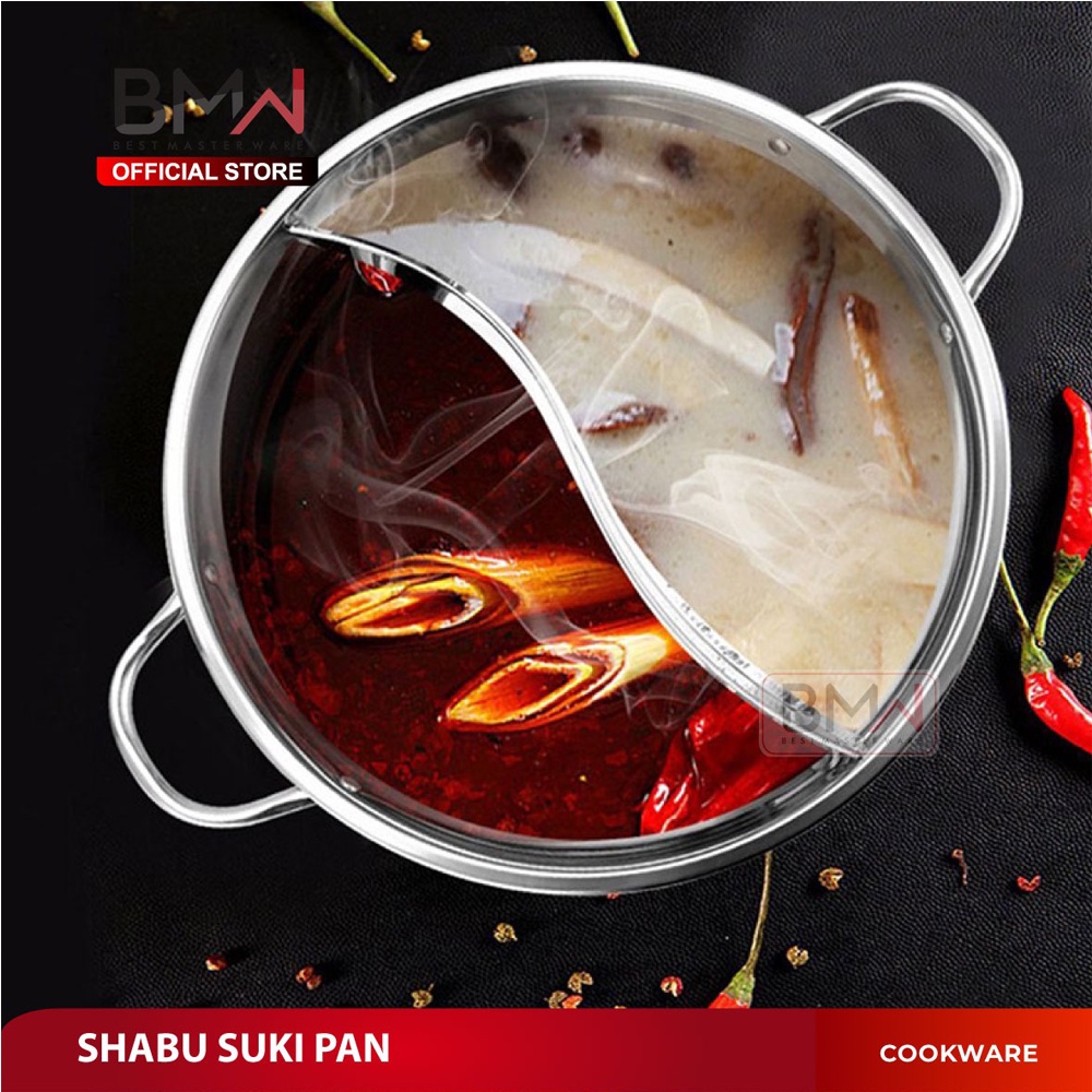 BMW Kitchen Ware Panci Shabu Sekat Bahan Stainless Steam Boat Panci Rebus Jepang Tutup Kaca Panci Suki