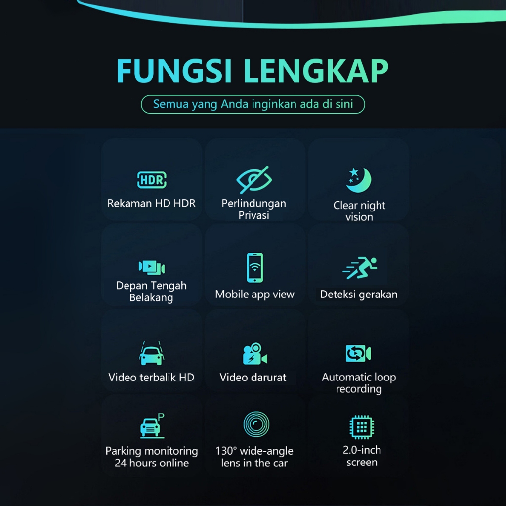 Acroder 4K Dashcam Mobil Q2 WiFi 2 Inch Ultra-clear Night Vision G-sensor Loop 24 jam