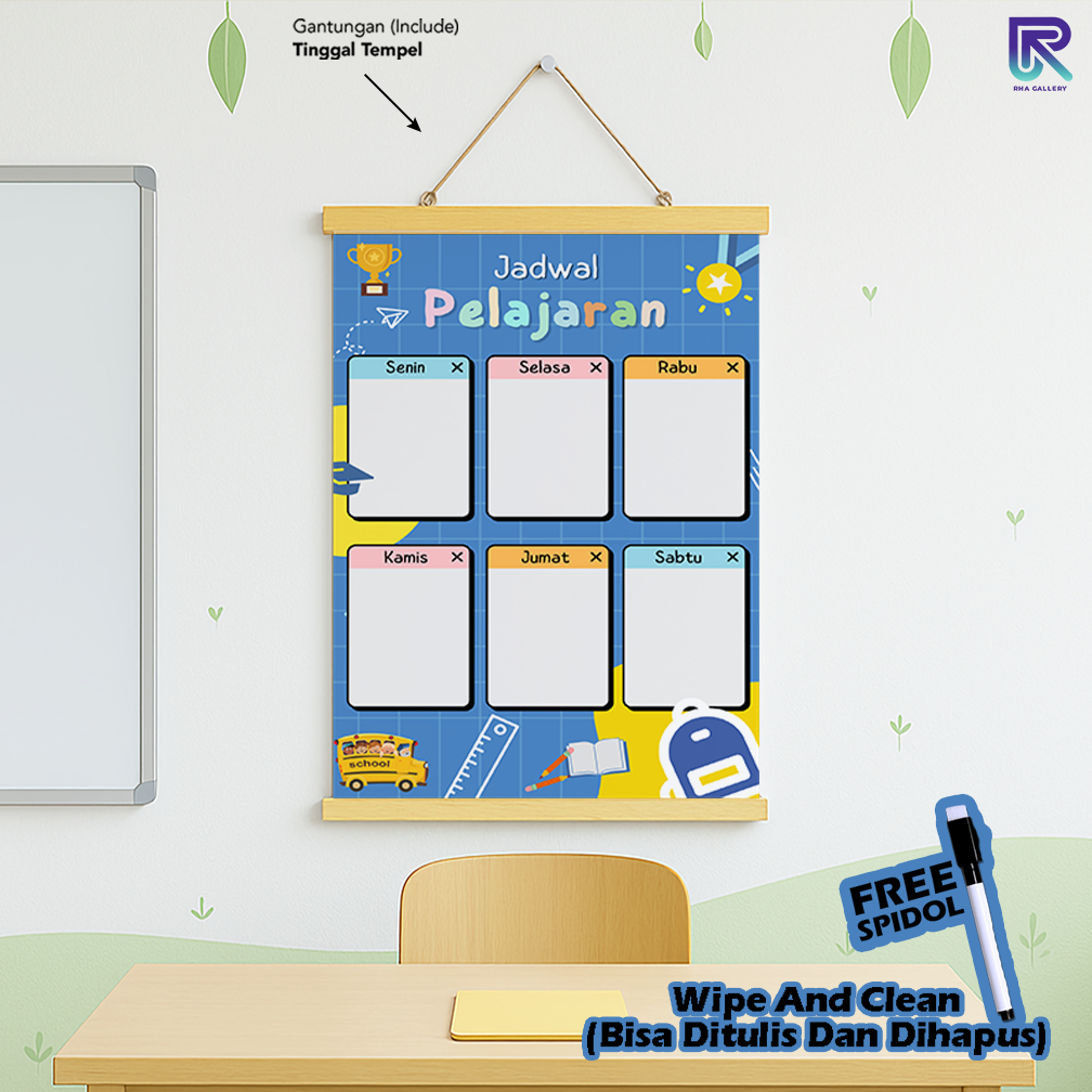 [PROMO] RHA GALLERY Planner Sekolah Jadwal Pelajaran Kelas Siswa Blue Wipe And Clean List Jadwal Tulis