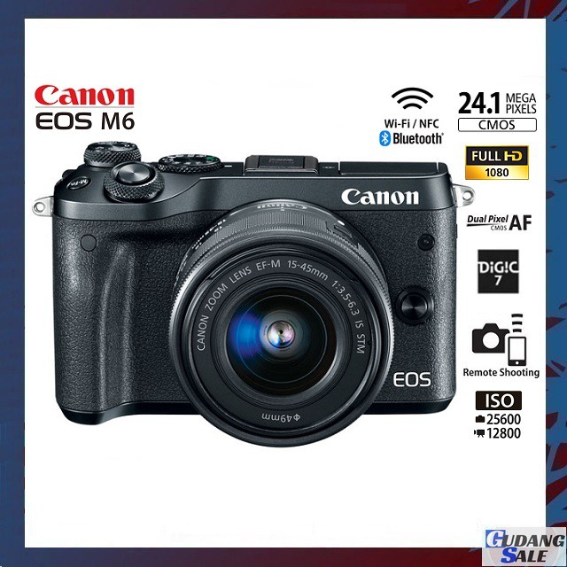 [NEW] KAMERA CANON EOS M6 + LENSA KIT 15-45MM IS STM WiFi - GARANSI 1 TAHUN - MIRRORLESS m50 m100 m3