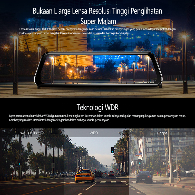 Acroder Dashcam Mobil 1080P 10'' IPS Layar Sentuh Night Vision Depan Belakang Dual Lens Loop