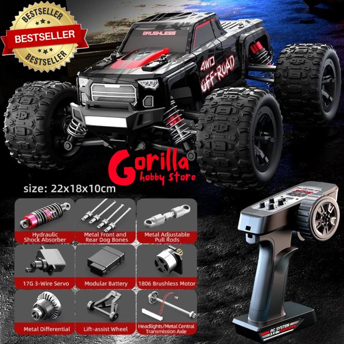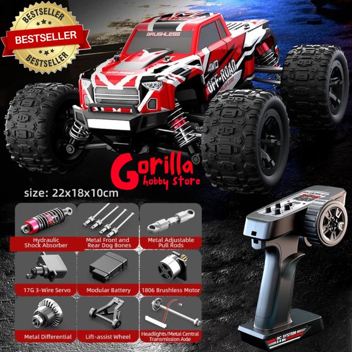 JJRC C8811 brushless rc monster truck 2.4ghz 4WD 1/20 RTR full propo off-road high speed remot mobil - Merah