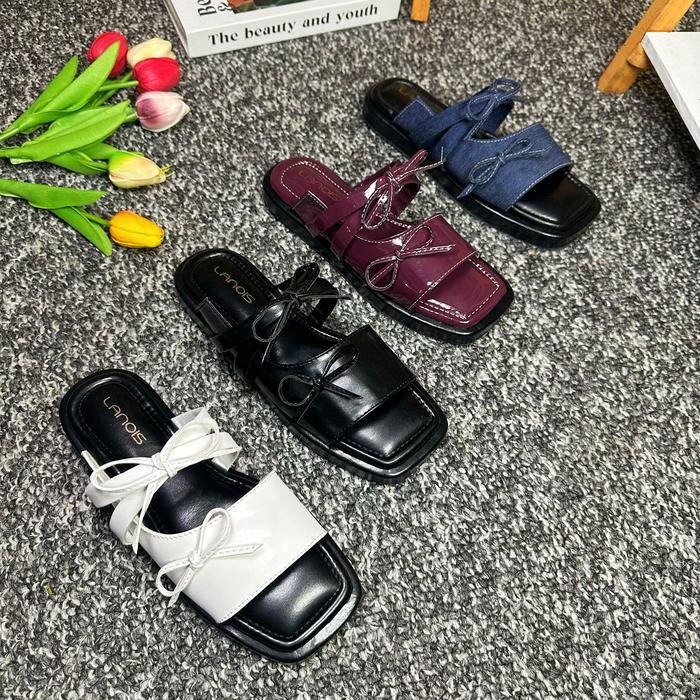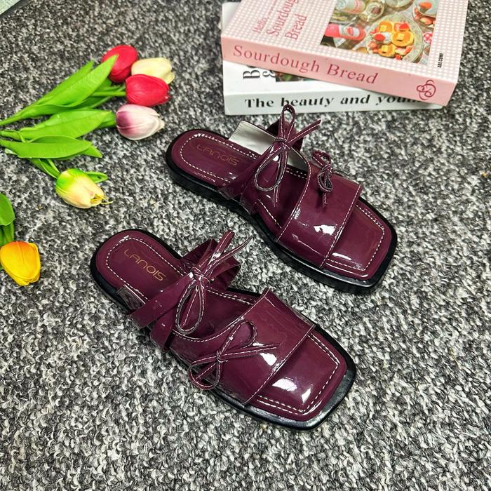 Sandal Wanita Platform Terbaru Sendal Wanita Selop Pita Tali Empuk Viral SIZE 37 - 43 - BURGUNDI 37