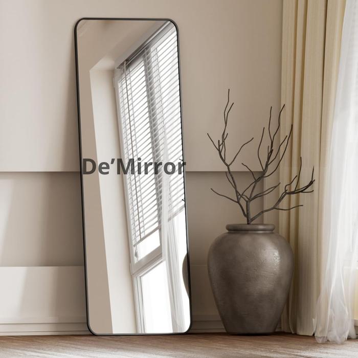 Kaca Cermin Gantung Sudut Rounded Dengan List Karet Hitam Ukuran 150x385 CM - 150x38.5 Rounded List Hitam