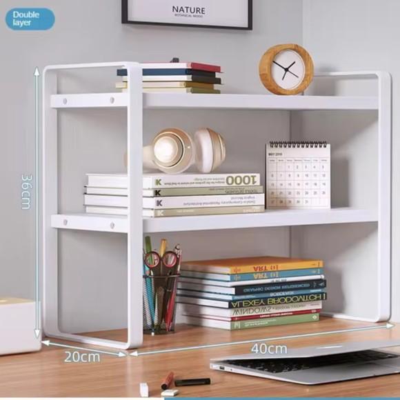 Rak Buku Meja Kayu Minimalis Rakit DIY Book Shelf 2 Layer Organizer - A030-Putih