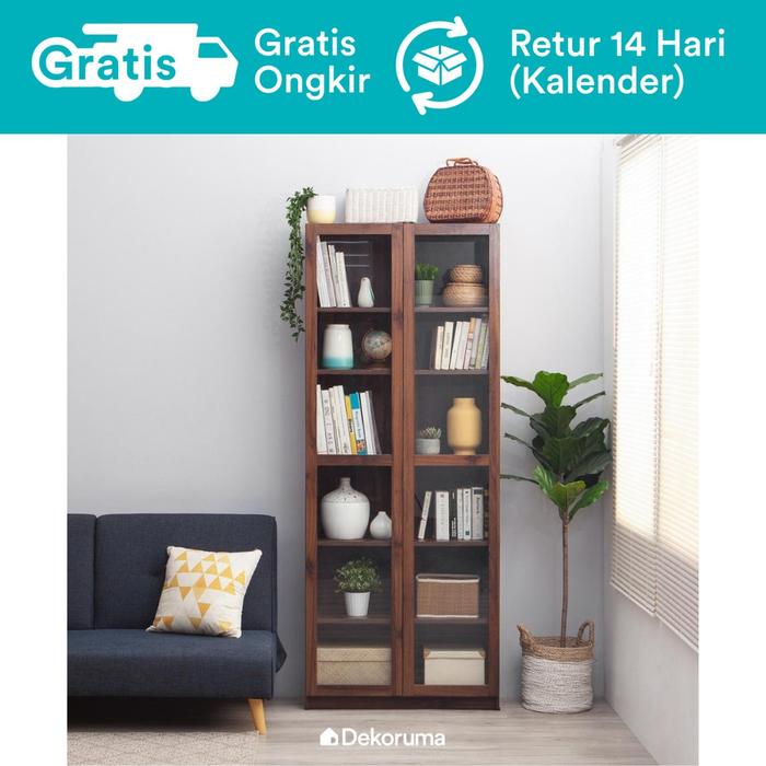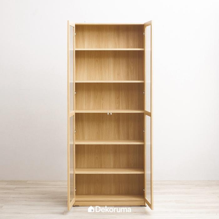 Dekoruma Kino Lemari Rak Buku Serbaguna Kayu 6 Susun Minimalis Pintu Kaca - Cokelat Muda