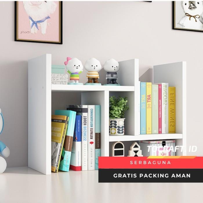 Rak Kayu Organizer Buku Meja Belajar Aesthetic DIY Minimalis - Putih